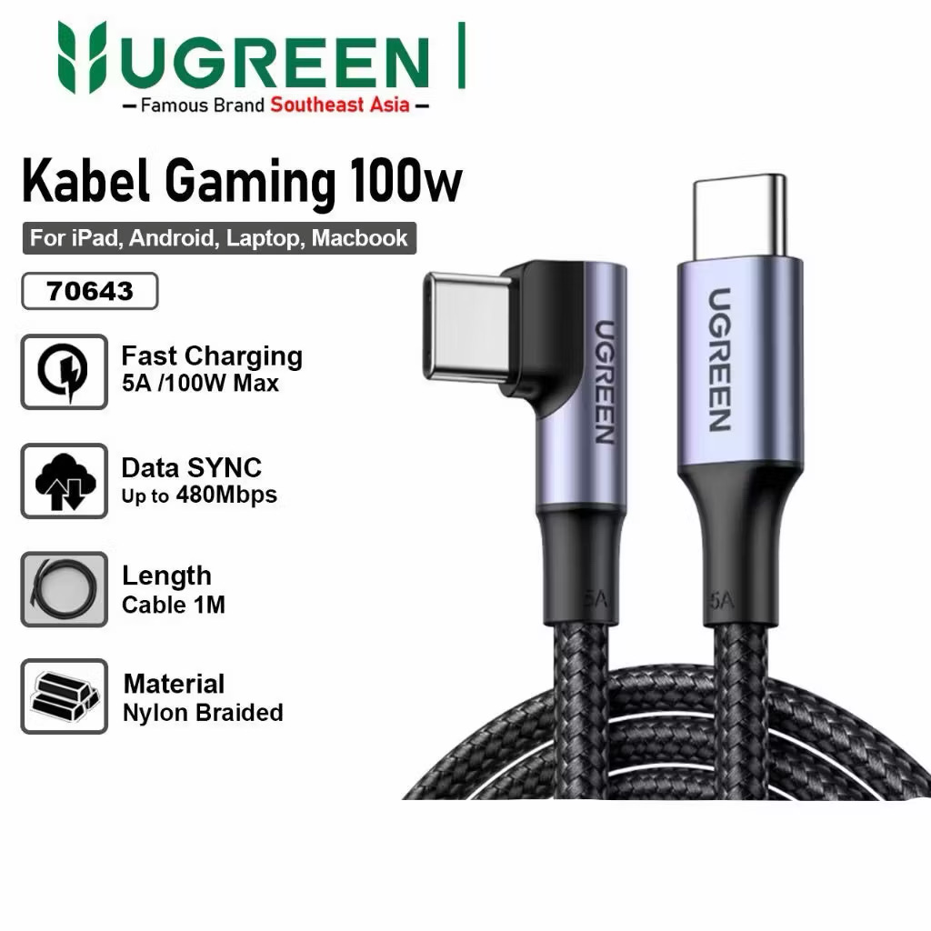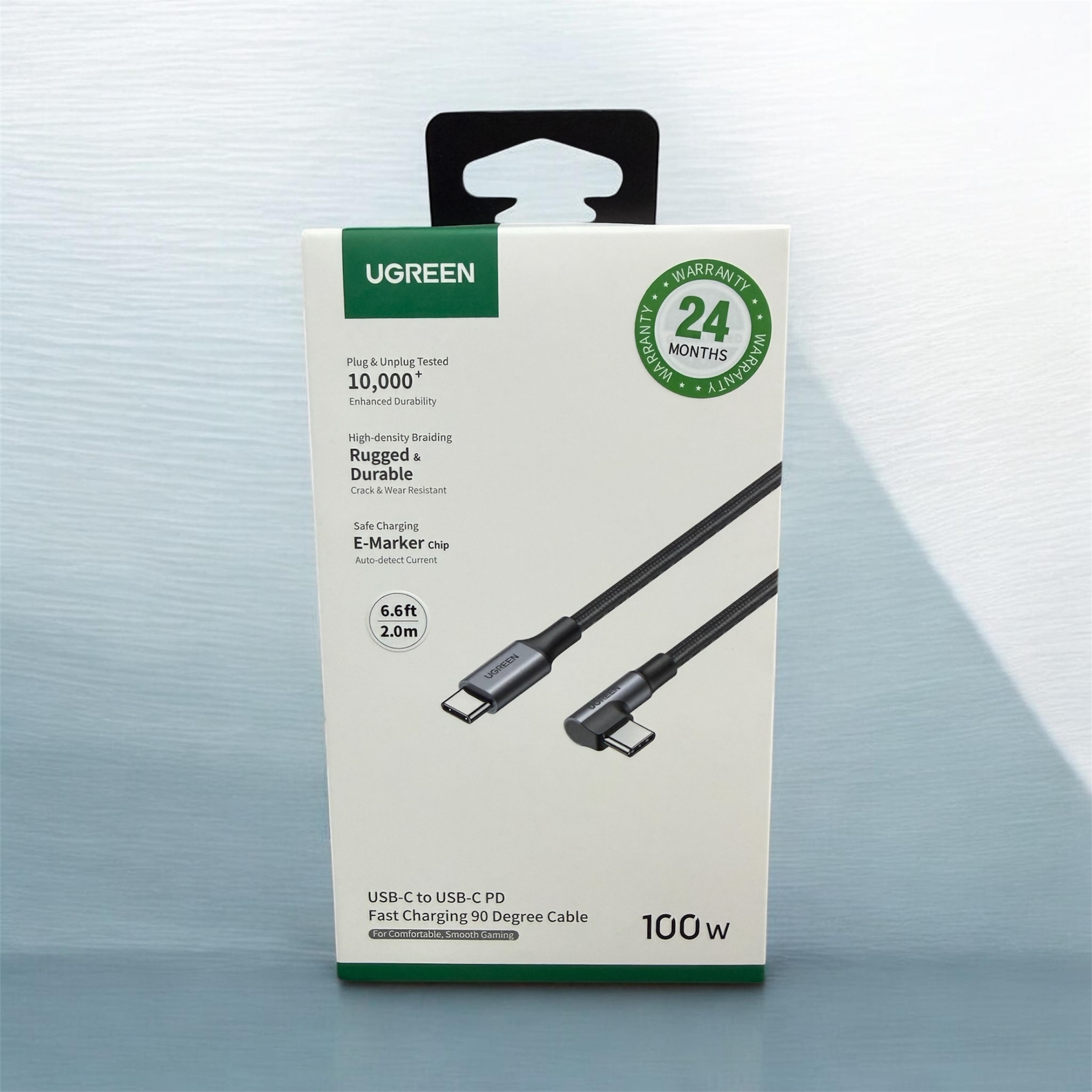 / UREEN US334 100W 2M USB-C to USB-C PD fast charging 90 degree cable